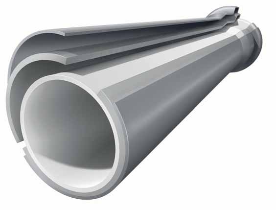 The anti-slip collar consists of two half-rings made of galvanised steel equipped with rounded teeth on one side that, under the pressure induced by tightening of the clamping screws, deform the protective outer layer of the pipe, taking advantage of the polypropylene’s visco-plastic characteristics.